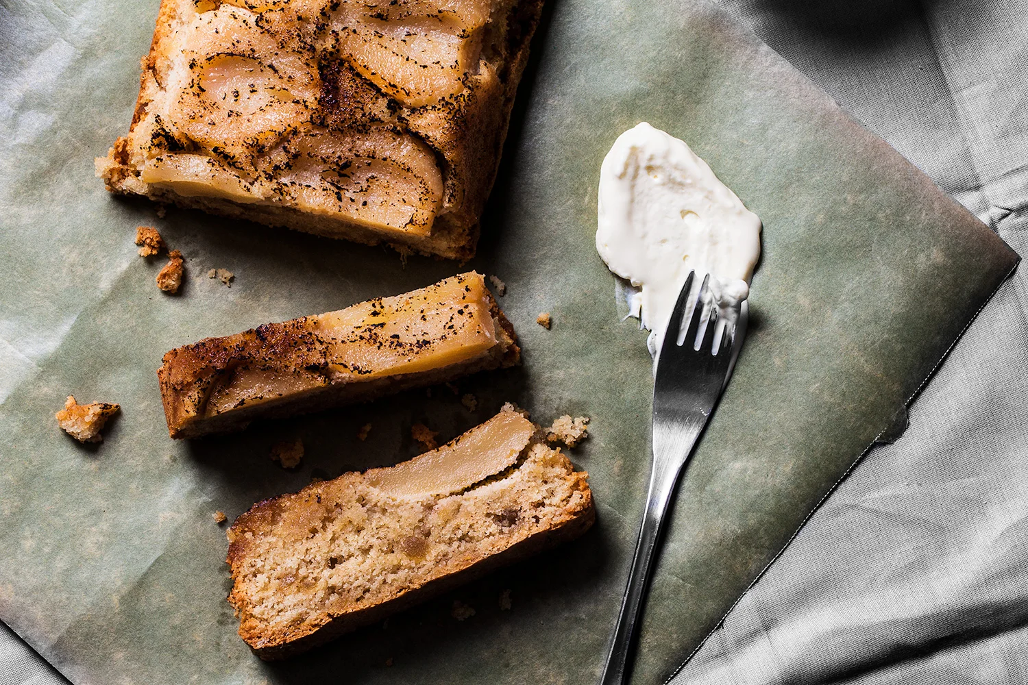 Pear + Ginger Upside-Down Cake. Recipe and styling by Cle-ann, photo by Hugh Adams.