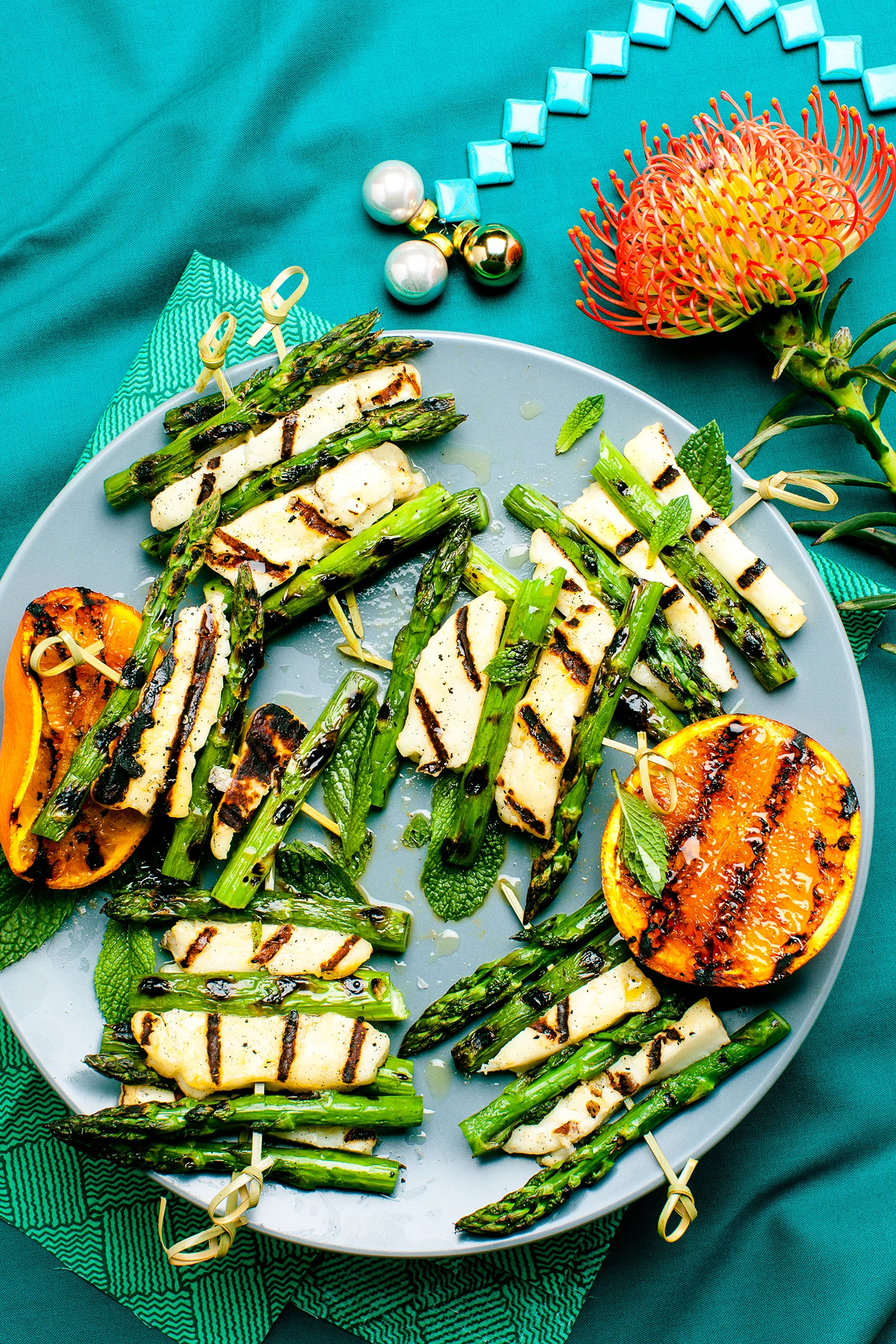 Grilled Haloumi and Asparagus with Orange & Mint, appeared originally in Yum. Gluten Free Magazine Dec Issue. Recipe and styling by Cle-ann, photo by Hugh Adams.